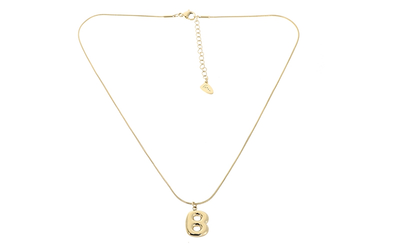 Voeg een persoonlijke touch toe aan je collectie met de Alpha B. Deze goudkleurige damesketting met een opvallende letter is een gewild artikel voor de fysieke winkel of webshop door de aanhoudende trend van gepersonaliseerde sieraden.