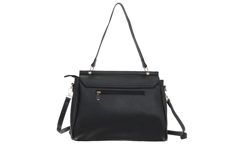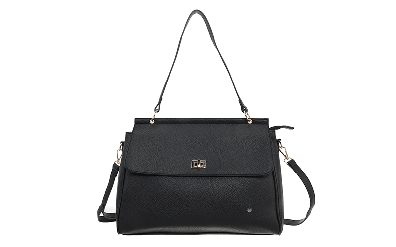 Hoogwaardige afwerking: De overslag met de opvallende metalen draaisluiting geeft deze handtas een premium look, wat direct inspeelt op de vraag naar chique en veilige tassen.