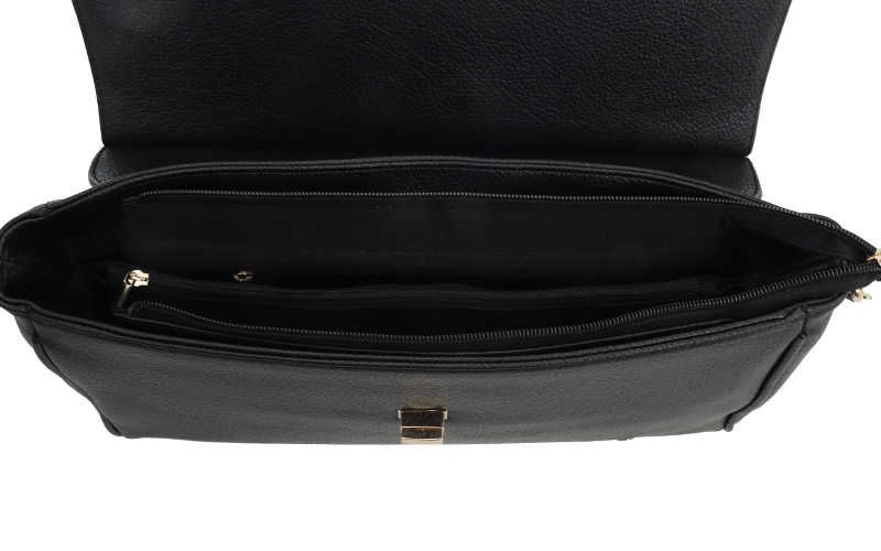 Uitzonderlijke organisatie: Met afmetingen van 35 cm breed biedt het interieur maximale orde via meerdere vakken, waaronder een centraal ritsvak, een ritsvakje onder de flap en een veilig achtervak voor snelle toegang.