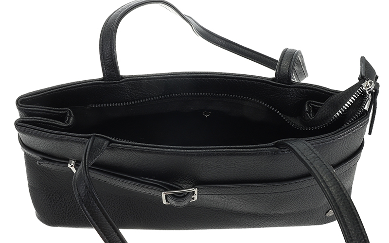 Opvallend Detail: De voorkant is subtiel afgewerkt met een elegant, decoratief riempje en een zilverkleurige gesp, wat de tas direct een verfijnde look geeft.
