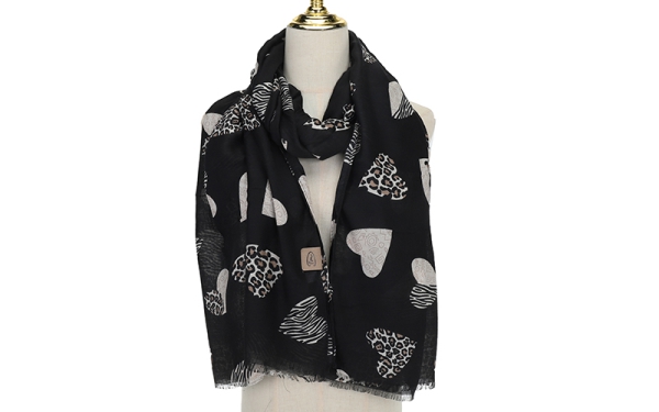 Trendy printcombinatie: De speelse mix van abstracte hartjes en een trendy panterpatroon speelt perfect in op de actuele vraag naar opvallende damesaccessoires.