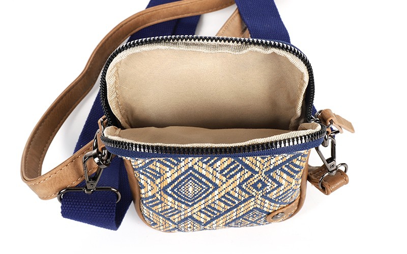 Dit tasje wordt geleverd met twee schouderbanden; een effen smalle band, en een geweven brede band. Zo kun je zelf kiezen welke band het beste bij je outfit past!