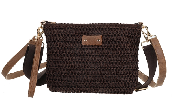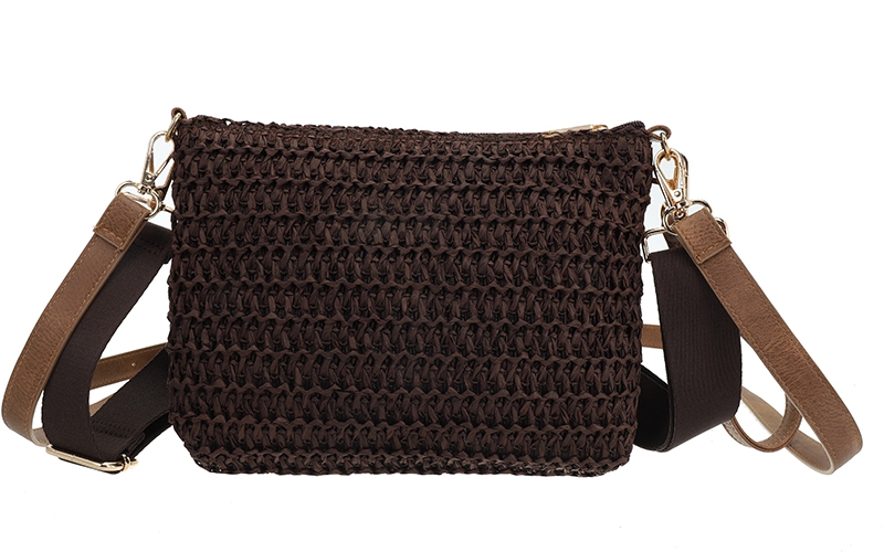 Zomerse trend: Het herkenbare geweven patroon en de contrasterende details geven het tasje een populaire vakantie-look die een brede doelgroep aanspreekt.