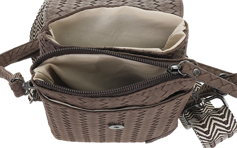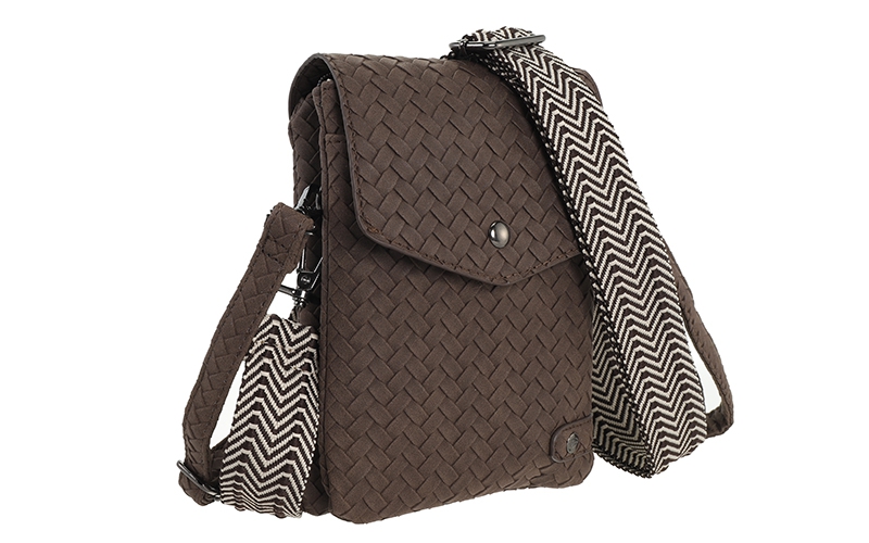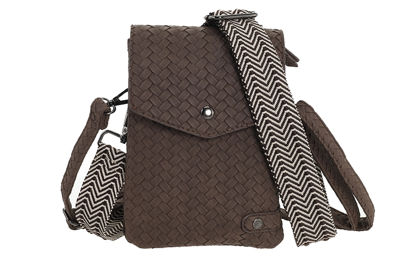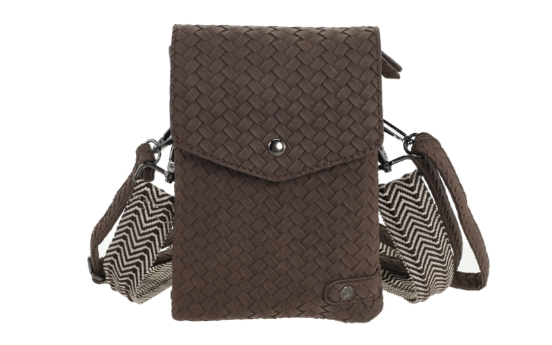 De Brisbane speelt slim in op de aanhoudende trend van compacte telefoontasjes. Dit model onderscheidt zich in uw collectie door de luxe ogende gevlochten structuur en de veelzijdigheid van twee meegeleverde schouderbanden. Een sterke keuze voor klanten die zoeken naar een praktische crossover die bij elke outfit past.