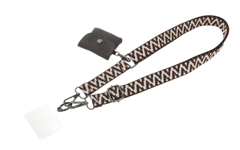 De Jansje telefoonstrap is de ultieme accessoire voor wie handsfree op pad wil. Deze verstelbare, geweven band heeft een trendy patroon en is voorzien van een handig, afneembaar portemonneetje voor je oordopjes, sleutel of kleingeld.