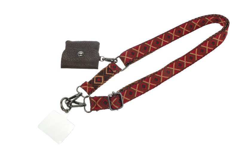 De Jansje telefoonstrap is de ultieme accessoire voor wie handsfree op pad wil. Deze verstelbare, geweven band heeft een trendy patroon en is voorzien van een handig, afneembaar portemonneetje voor je oordopjes, sleutel of kleingeld.