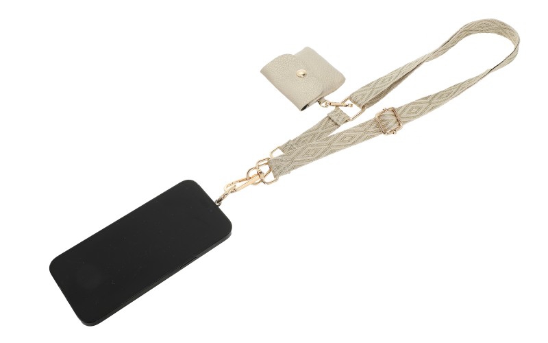 De Jansje telefoonstrap is de ultieme accessoire voor wie handsfree op pad wil. Deze verstelbare, geweven band heeft een trendy patroon en is voorzien van een handig, afneembaar portemonneetje voor je oordopjes, sleutel of kleingeld.