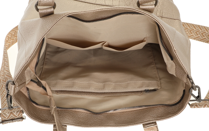 Slim & veilig ingedeeld – Een ruim hoofdvak met rits en twee aparte vakken bieden volop plek voor je grotere spullen, terwijl twee extra zijvakjes je kleinere waardevolle items veilig opbergen.