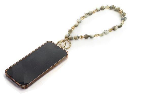 Zorg dat een smartphone altijd veilig én stijlvol binnen handbereik is met de Joyce. Dit elegante telefoon polsbandje is voorzien van prachtige kralen met een marmer- of natuursteenlook, afgewisseld met goudkleurige accenten. Hoewel het design luxe en robuust oogt, zorgt het acrylmateriaal voor een verrassend licht en comfortabel draaggemak.