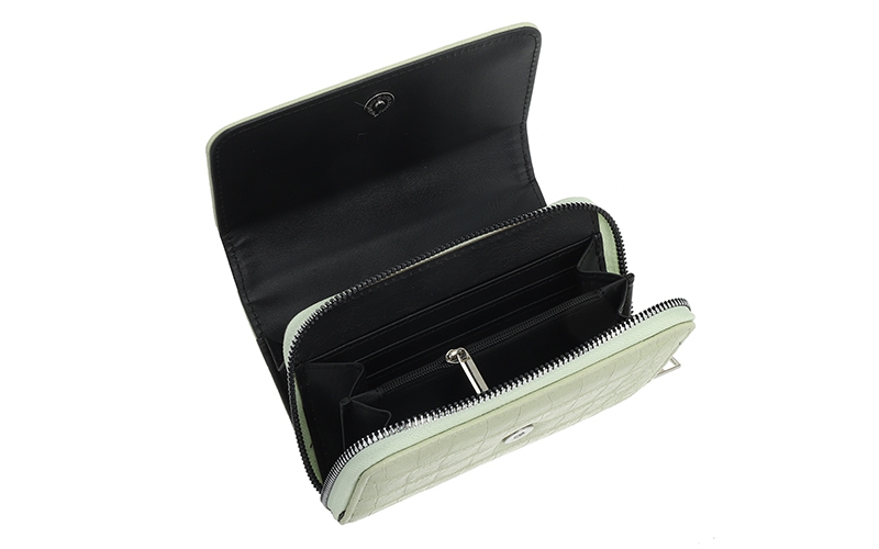 Veilige overslag portemonnee: De dubbele sluiting met drukmagneet en stevige rits geeft klanten een veilig gevoel bij het opbergen van pasjes en contant geld, wat de aankoopbereidheid direct verhoogt.