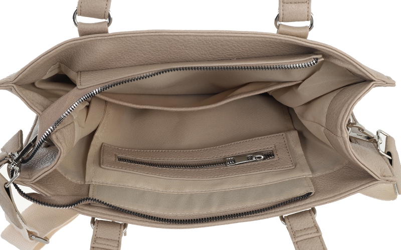 Slimme Indeling: Binnenin is de tas overzichtelijk afgewerkt met een handig steekvakje en een extra ritsvakje voor waardevolle spullen.