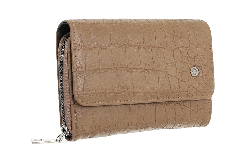 Breid je assortiment uit met de Bangor. Deze bruine damesportemonnee met krokoprint is een sterke toevoeging voor retailers die een compacte pashouder zoeken voor hun collectie. Een populair artikel voor in de webshop of fysieke winkel door de gewilde dierenprint en de handige ritsvakken voor pasjes en muntgeld.