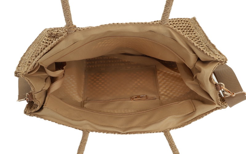 Veilig afgesloten: In tegenstelling tot veel open zomertassen is het ruime hoofdvak aan de bovenzijde volledig af te sluiten via een stevige rits, wat zorgt voor een veilig gevoel bij de klant.