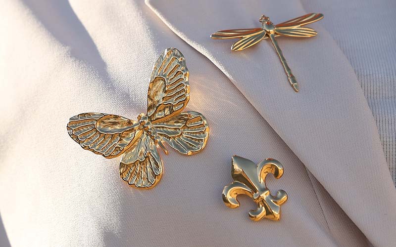 Maak je outfit compleet met de nieuwste collectie gouden broches van ImDutch! Deze verfijnde accessoires voegen direct een vleugje elegantie en persoonlijkheid toe aan je look. Van gedetailleerde vlinders en bijen tot speelse zonnestralen en een klassieke camera met parelaccent – elke broche vertelt zijn eigen verhaal.