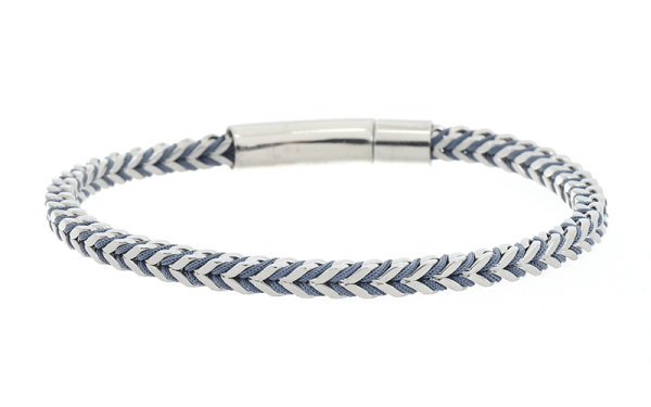 Deze armband combineert hoogwaardig met een uniek verweven metalen detail, waardoor hij direct opvalt door zijn robuuste én moderne uitstraling. De zilverkleurige stainless?steel afwerking maakt de look helemaal af en zorgt ervoor dat de armband moeiteloos met elke outfit te combineren is.