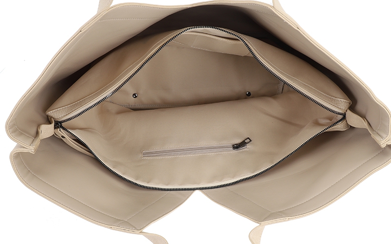 Eigentijdse uitstraling: De soepele valling en de knoopdetails op de schouderbanden geven deze XXL-tas een moderne look die direct opvalt en inspeelt op de vraag naar grotere tassen.