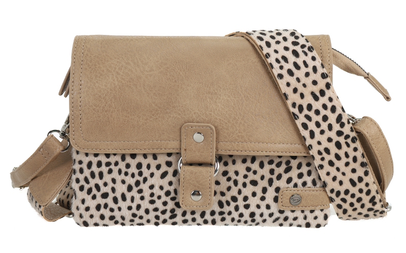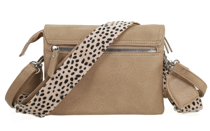 Breid je assortiment uit met de Bremen Dot. Deze opvallende schoudertas is een sterke toevoeging voor retailers die een trendy damestas met animal print zoeken voor hun collectie. Een populair artikel in de webshop door het contrasterende stippenpatroon en de veelgevraagde verwisselbare tassenriem.