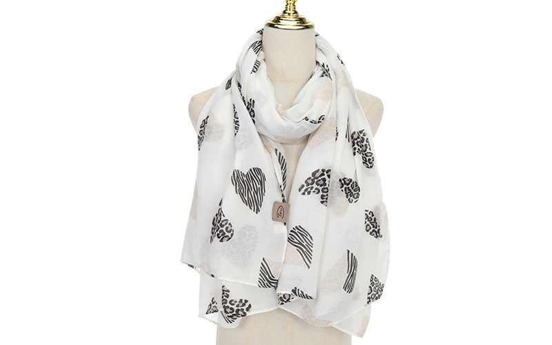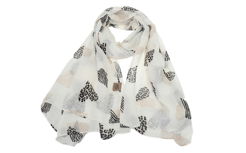 Trendy printcombinatie: De speelse mix van abstracte hartjes en een trendy panterpatroon speelt perfect in op de actuele vraag naar opvallende damesaccessoires.