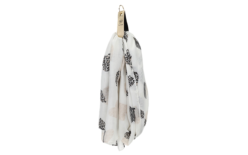 Breid je assortiment uit met de Pienza. Deze grote damessjaal is een sterke toevoeging voor retailers die een opvallend fashion accessoire zoeken voor hun collectie. Een gewild artikel in de fysieke winkel of webshop door de unieke mix van een geliefd hartjesmotief en trendy dierendetails.