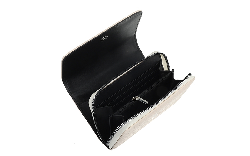 Veilige overslag portemonnee: De dubbele sluiting met drukmagneet en stevige rits geeft klanten een veilig gevoel bij het opbergen van pasjes en contant geld, wat de aankoopbereidheid direct verhoogt.
