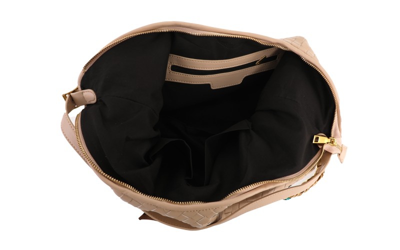 Luxe Geweven Textuur: Het verfijnde vlechtwerk geeft de tas een exclusieve luxe uitstraling