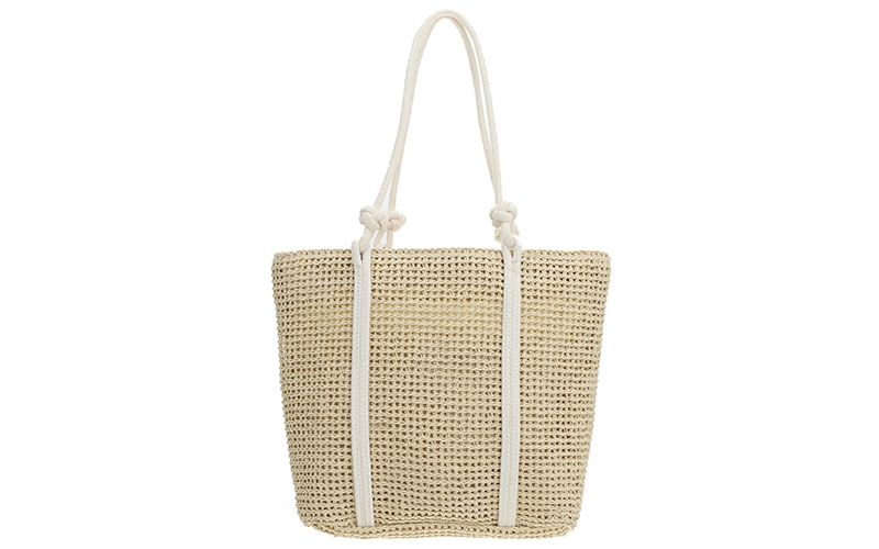Zomerse blikvanger: Het soepele, geweven patroon geeft de tas een populaire strand-look die direct inspeelt op de vraag naar vakantie-accessoires.