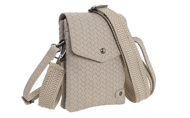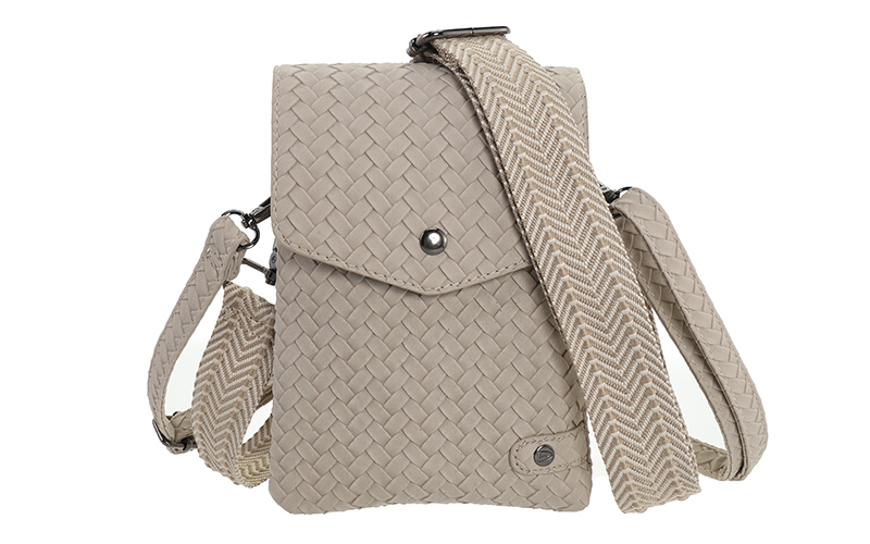De Brisbane speelt slim in op de aanhoudende trend van compacte telefoontasjes. Dit model onderscheidt zich in uw collectie door de luxe ogende gevlochten structuur en de veelzijdigheid van twee meegeleverde schouderbanden. Een sterke keuze voor klanten die zoeken naar een praktische crossover die bij elke outfit past.