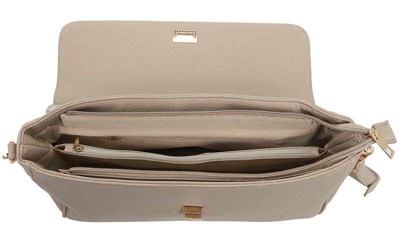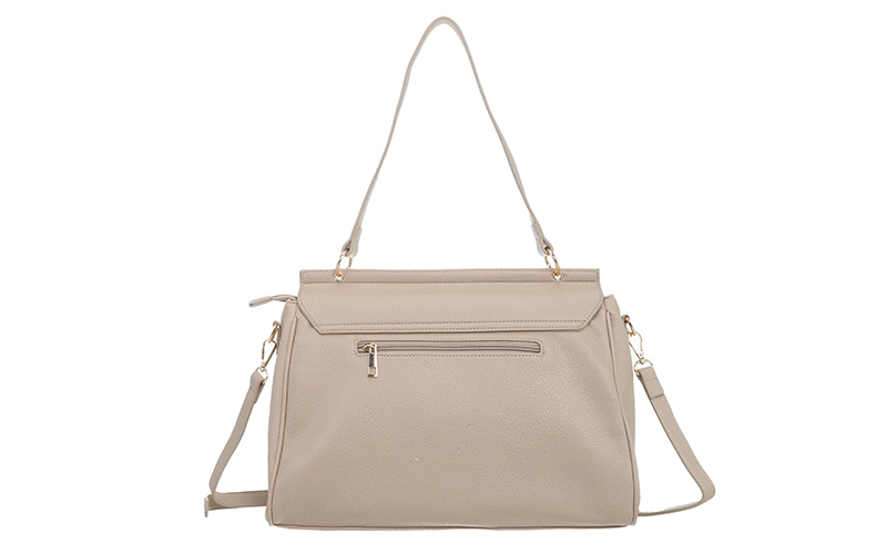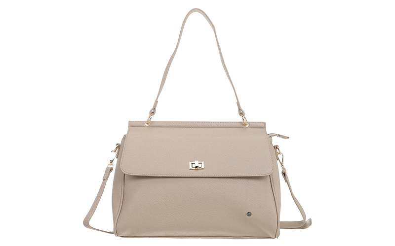 Hoogwaardige afwerking: De overslag met de opvallende metalen draaisluiting geeft deze handtas een premium look, wat direct inspeelt op de vraag naar chique en veilige tassen.