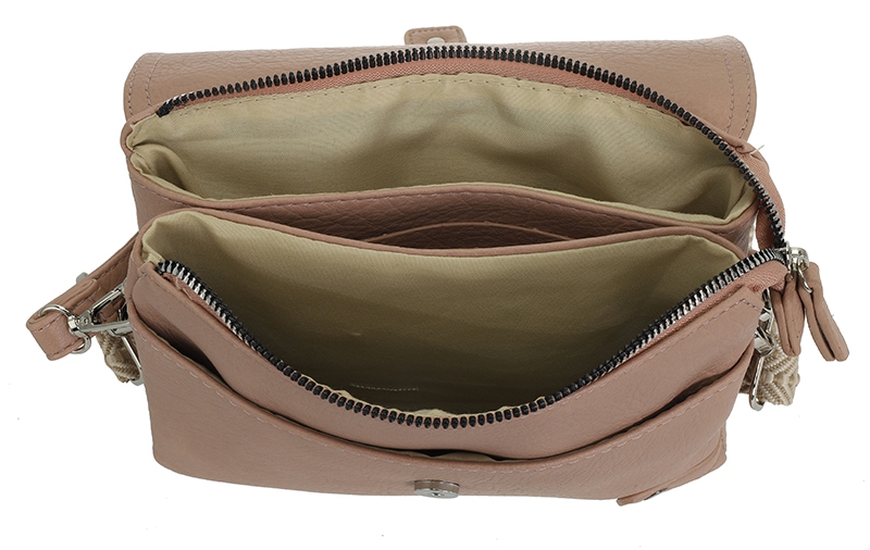 Slimme vakverdeling: Klanten zoeken overzicht; de twee ritsvakken, het voorvak onder de flap en het veilige achtervak bieden maximale opbergruimte in een klein formaat.