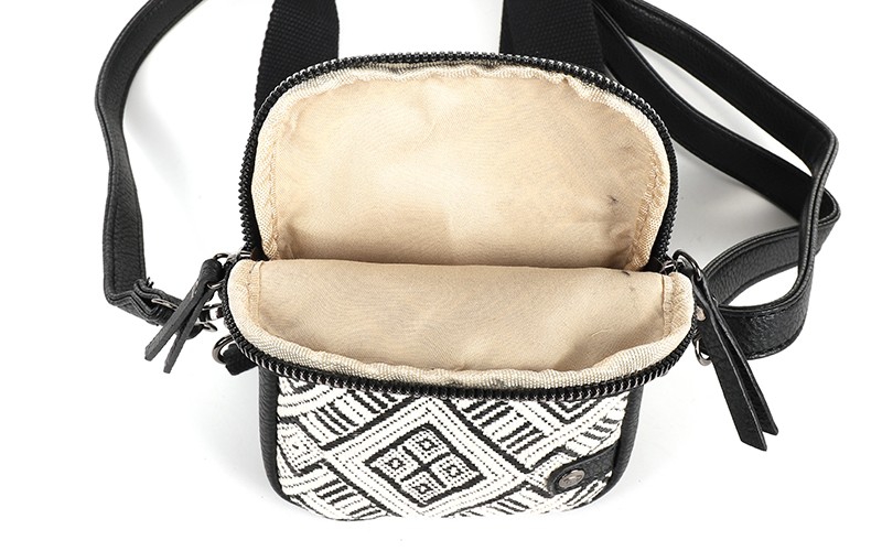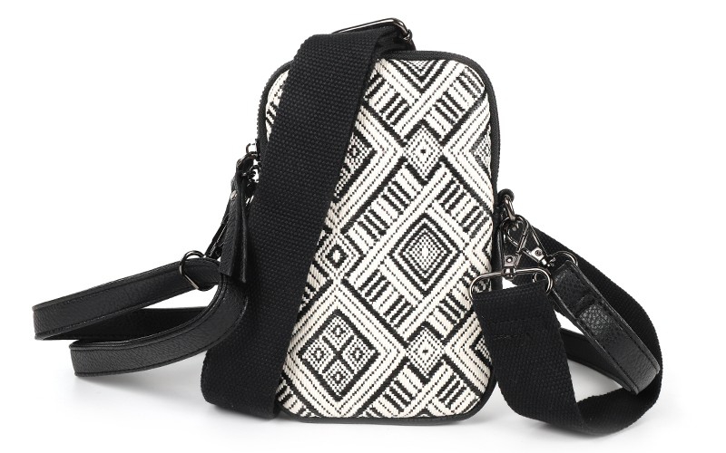 Dit tasje wordt geleverd met twee schouderbanden; een effen smalle band, en een geweven brede band. Zo kun je zelf kiezen welke band het beste bij je outfit past!
