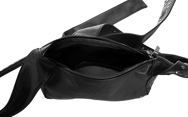 Extra’s: Lang, zelf te knopen hengsel met stud-details, interne vakjes.