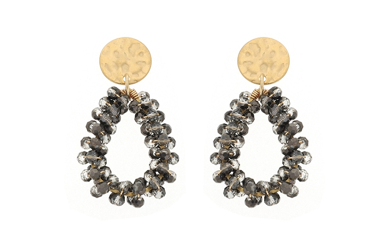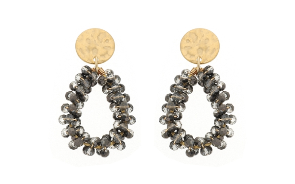 Met de Ivette voegt u een verfijnde, modieuze oorbel toe aan uw assortiment. De combinatie van de goudkleurige, gehamerde steker en de druppelvormige hanger van kristallen maakt dit een item met een hoge attentiewaarde.