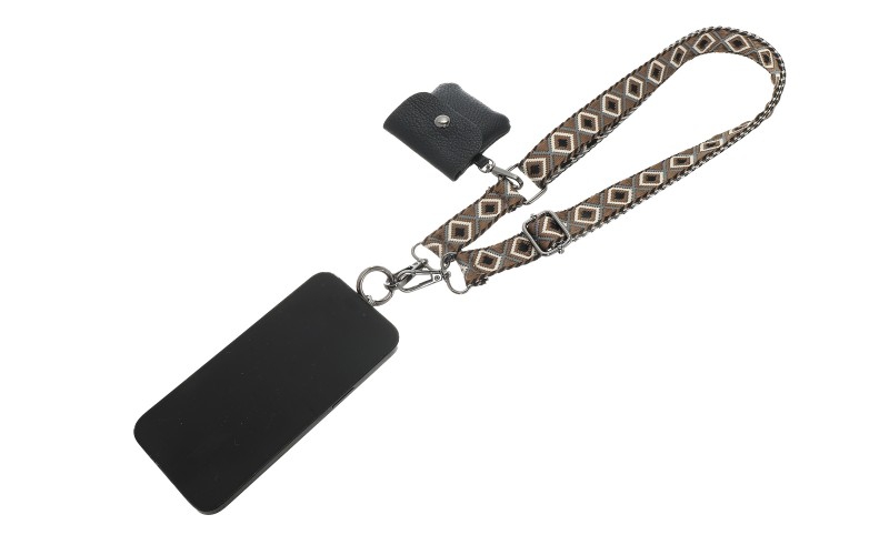 De Jansje telefoonstrap is de ultieme accessoire voor wie handsfree op pad wil. Deze verstelbare, geweven band heeft een trendy patroon en is voorzien van een handig, afneembaar portemonneetje voor je oordopjes, sleutel of kleingeld.