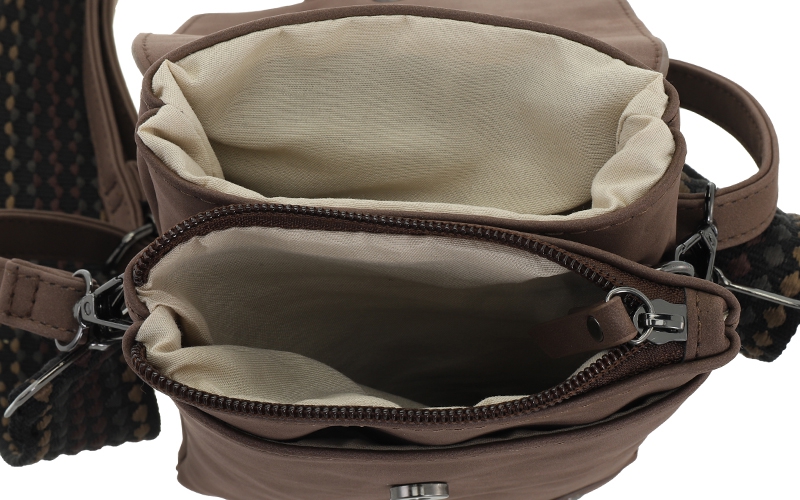 Veilige Sluiting – De flap met magneetsluiting en siergesp zorgt ervoor dat je spullen goed opgeborgen blijven.
