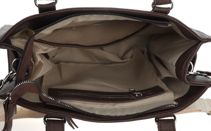 Slimme Indeling: Binnenin is de tas overzichtelijk afgewerkt met een handig steekvakje en een extra ritsvakje voor waardevolle spullen.