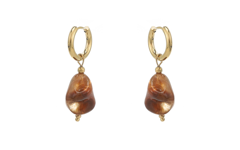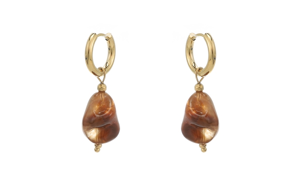 De Tori oorbellen zijn ideaal als je een 'chunky' look wilt, maar geen zwaar gewicht aan je oren. De grote, organisch gevormde hangers geven het effect van natuursteen met goudkleurige accenten.
