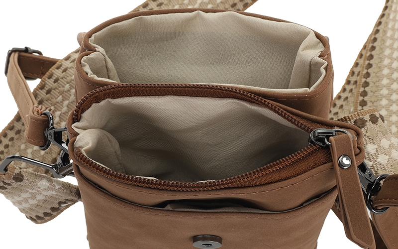 Handige Indeling – Twee identieke vakken, waarvan één met rits, voor jouw telefoon, sleutels, geld en pasjes.