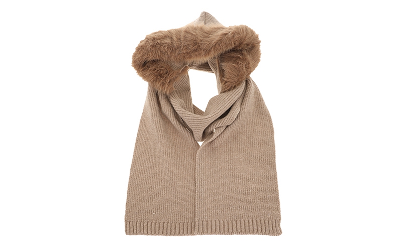 Dubbele Luxe: Geniet van de prachtige combinatie van het zachte, geribbelde breisel van de sjaal en de onweerstaanbaar zachte rand van faux fur langs de capuchon.