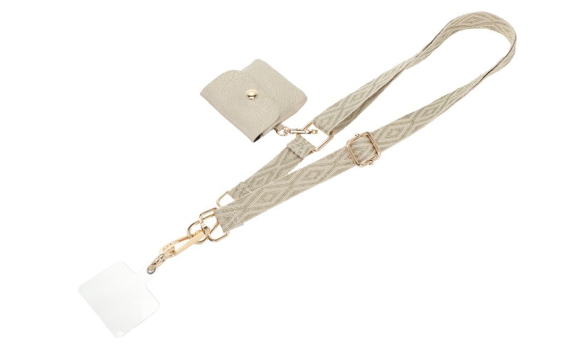 De Jansje telefoonstrap is de ultieme accessoire voor wie handsfree op pad wil. Deze verstelbare, geweven band heeft een trendy patroon en is voorzien van een handig, afneembaar portemonneetje voor je oordopjes, sleutel of kleingeld.