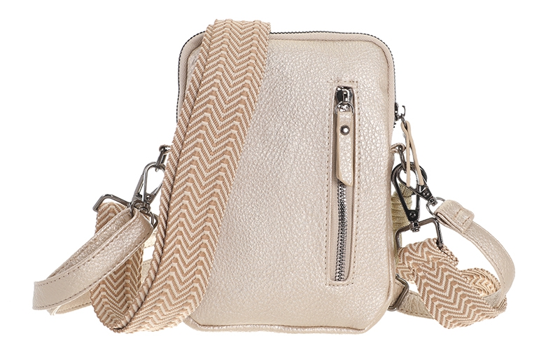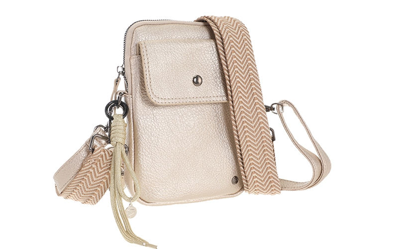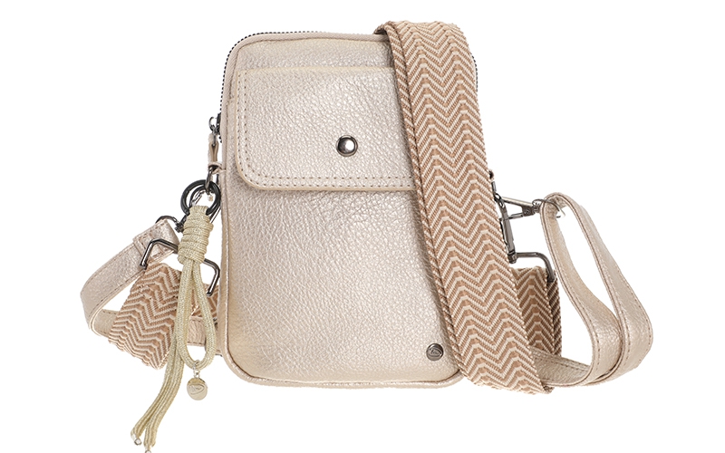 De voorzijde is voorzien van een extra vak met drukknopsluiting – handig voor spullen waar je snel bij moet. Binnenin vind je een hoofdvak met ritssluiting en genoeg ruimte voor je telefoon, sleutels, pasjes of andere essentials. De brede geweven schouderband geeft dit tasje nét dat beetje extra stijl, en is uiteraard verstelbaar voor optimaal draagcomfort.