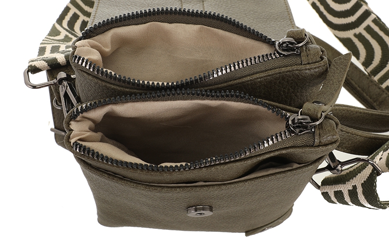 Handig Ingericht: Binnenin vind je voldoende ruimte voor je telefoon, pasjes, sleutels en andere must-haves. Alles goed beschermd onder de klep met magneetsluiting én een dubbele ritssluiting.