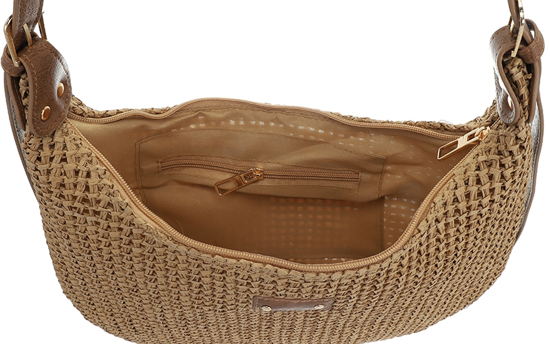 Zomerse trend: Het herkenbare geweven patroon en de contrasterende schouderband geven de tas een populaire look die een brede doelgroep aanspreekt.