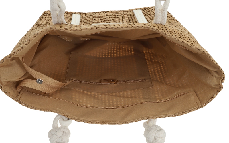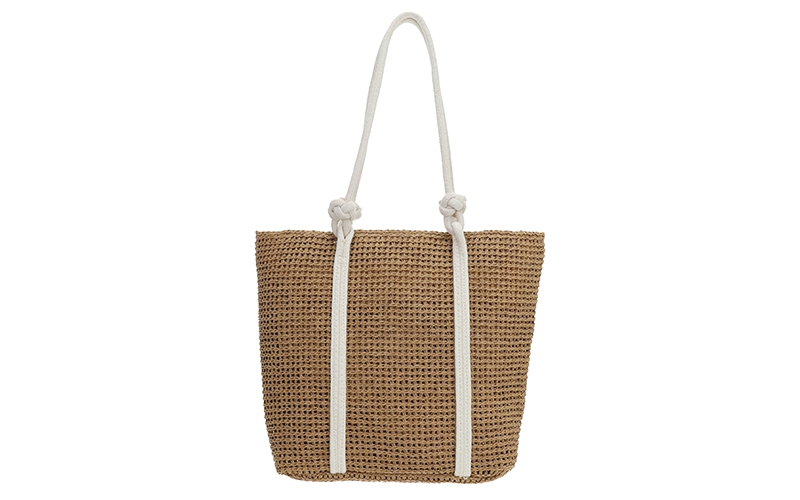 Zomerse blikvanger: Het soepele, geweven patroon geeft de tas een populaire strand-look die direct inspeelt op de vraag naar vakantie-accessoires.