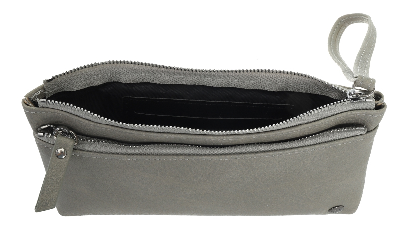Indeling: Een ritsvak aan de voorkant en een hoofdvak met rits (inclusief 3 interne steekvakken voor pasjes). Aan de achterkant zit een uitschuifbare pasjeshouder met ruimte voor meerdere pasjes en een doorzichtig venster.