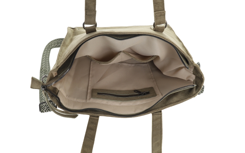 Georganiseerd interieur: De tas sluit volledig met een rits en beschikt aan de binnenzijde over een extra ritsvak en twee insteekvakken voor telefoon of sleutels.