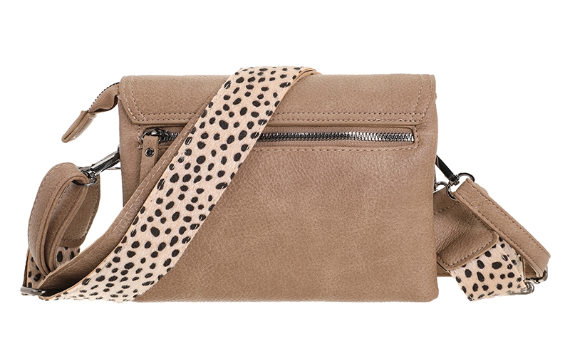 Onder de flap vind je een handig steekvak én een veilige ritssluiting. Die rits opent naar twee aparte vakken, zodat je je essentials overzichtelijk kunt opbergen. Aan de achterkant? Nog een extra ritsvak – perfect voor wat je graag snel bij de hand hebt.