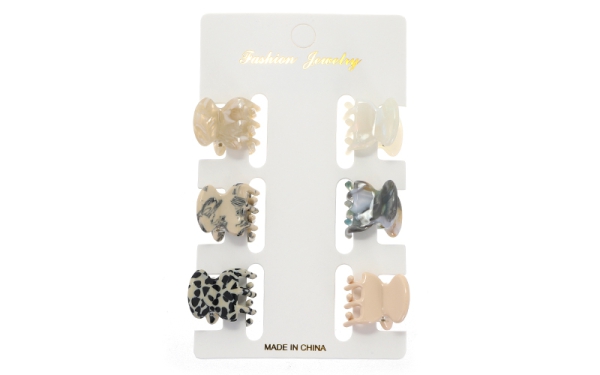 De Rika set bestaat uit 6 mini 'claw clips', onmisbaar voor het eenvoudig vastzetten van kleine lokken of het creëren van opgestoken kapsels. Met een compact formaat van 2x2 cm zijn deze klemmetjes praktisch in gebruik en geschikt voor diverse haartypes.