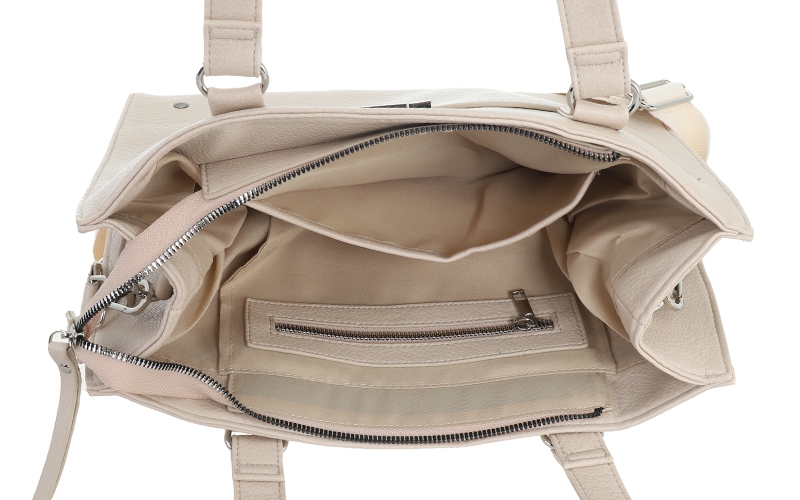 Slimme Indeling: Binnenin is de tas overzichtelijk afgewerkt met een handig steekvakje en een extra ritsvakje voor waardevolle spullen.