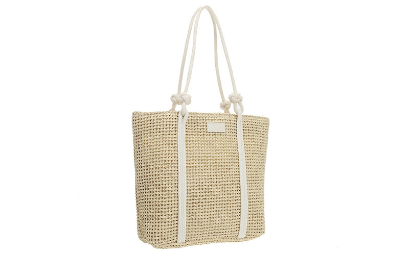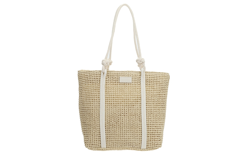 Zomerse blikvanger: Het soepele, geweven patroon geeft de tas een populaire strand-look die direct inspeelt op de vraag naar vakantie-accessoires.