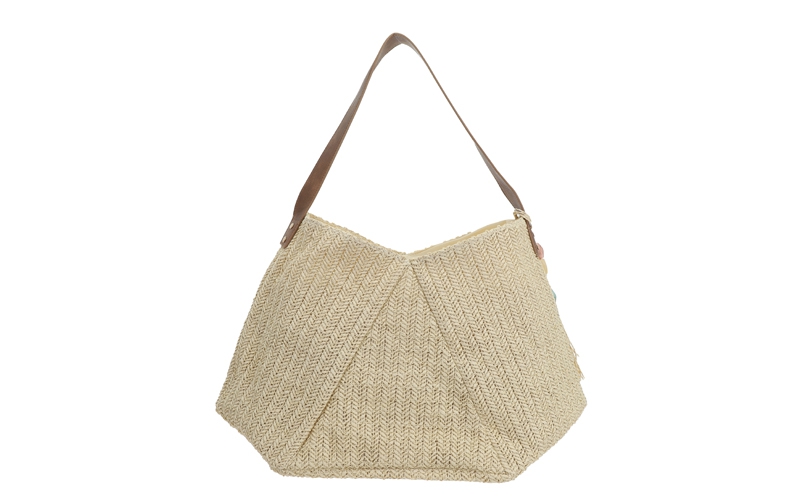 Zomerse blikvanger: Het luchtige, geweven zigzag-patroon en de bijpassende bagcharm met kleurrijke kraaltjes en een kwastje zorgen voor een zeer populaire vakantie-look.
